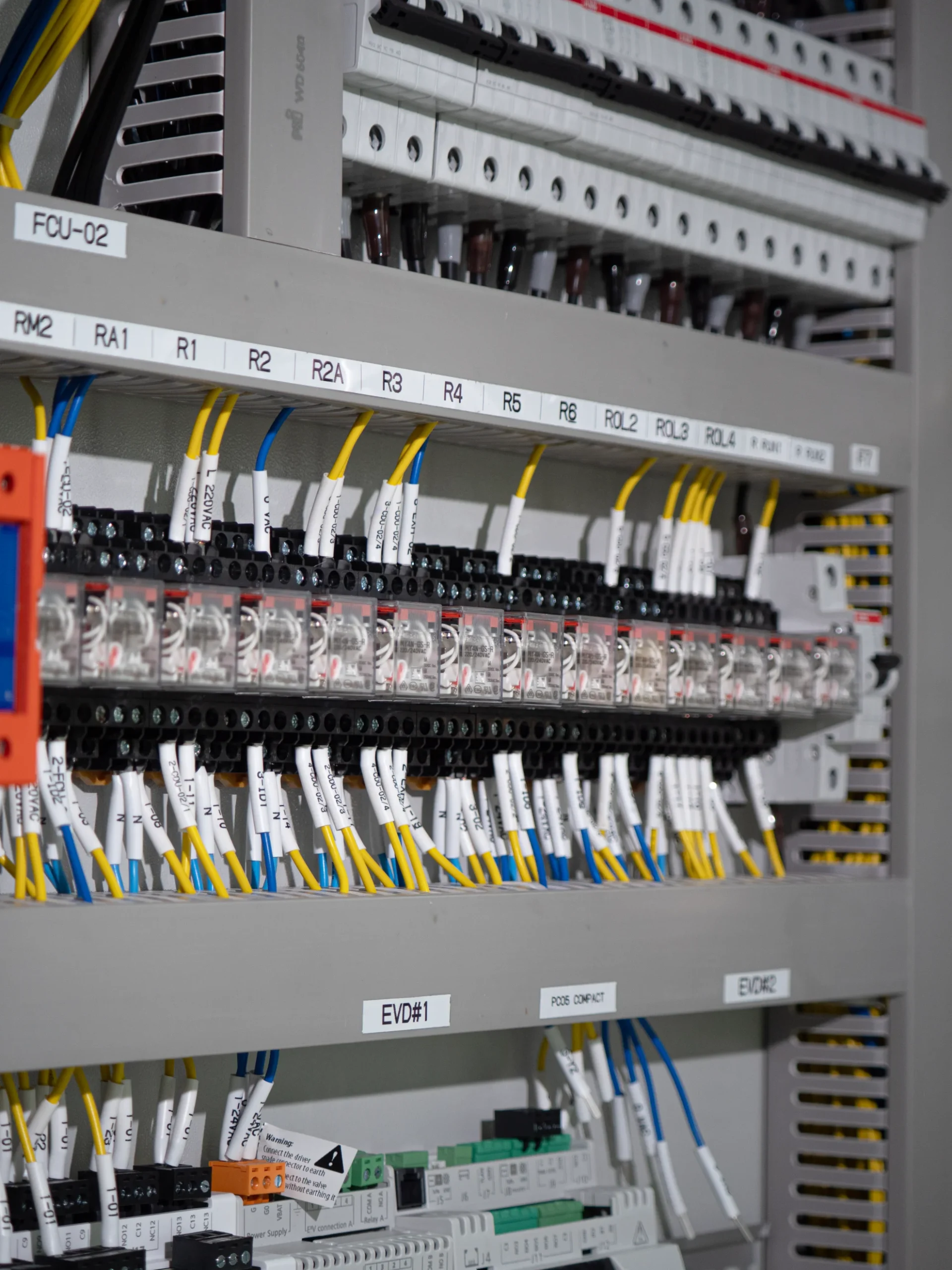 ภายในตู้ประกอบด้วยระบบควบคุมอัจฉริยะผ่าน PLC รุ่น CAREL PCO5+ พร้อมอินเทอร์เฟซ LCD รวมถึงการจัดวางอุปกรณ์ไฟฟ้าแบบแยกหมวดหมู่ พร้อมเดินสายภายในสวยงามและตามมาตรฐาน